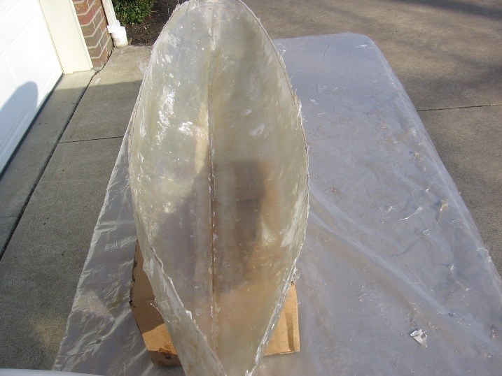so it was sunny enough to give the hull another two glass coats..and while still a little flexible...I popped the form out..no issues at all