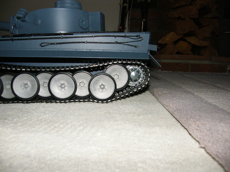 Hi all, thanks for all the tips, after looking at the options I decided to file away some of the shaft on the last set of road wheels to give some clearance, after charging up the battery and running the Tiger around on carpet and grass for twenty minutes with no problems this seems to have cured the issue!