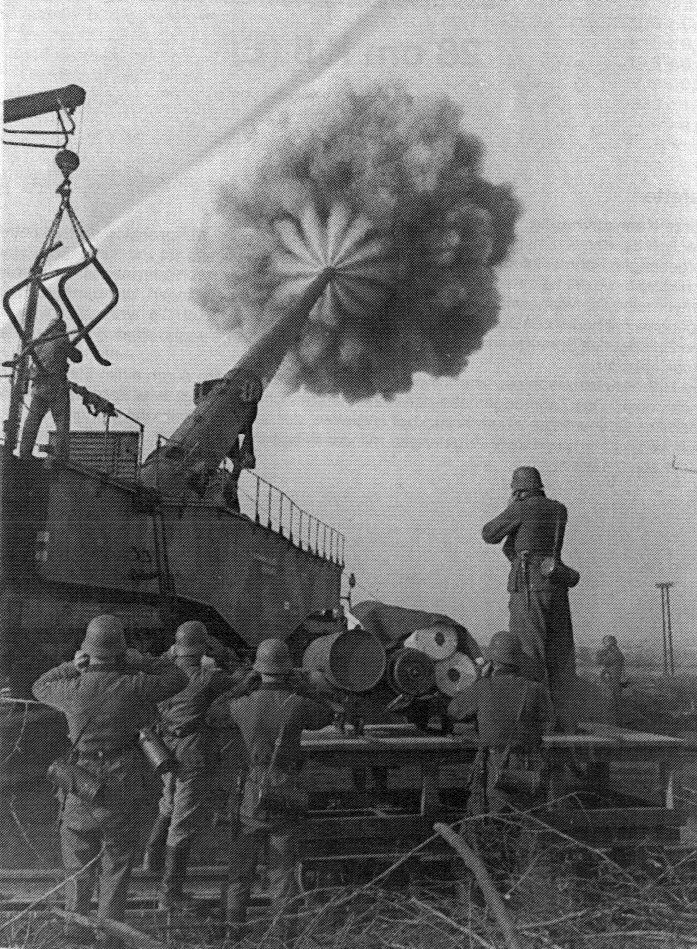 German 280mm K5 firing LOOK at the amazing pattern of the propellant smoke as it leaves the barrel...is it caused by the 'Rifling' in the barrel ??
