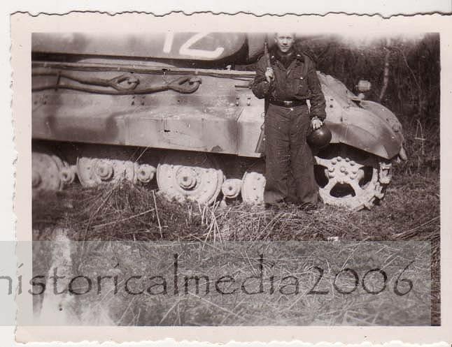 PARTICULARY THE THIRD PHOTO...it shows the turret in good detail even the small ring that it turned upon......BUT.....is there any zimmerit there ??? ....there are 3 small parallel lines above the soldiers right shoulder.....but I cannot honestly say that I can see any zimmerit paste, in the photo at all......even the hull looks doubtful...there are some horizontal lines..but I think that they are 'from and in' the actual photograph itself rather than actually ON the tank.....they are too thin and uniform...