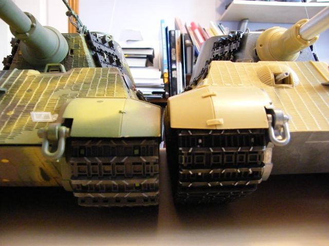 jukebox wrote:These two photographs show the difference in ride height between the Matorro King Tiger and the versions from Heng Long and Torro, both of which sit at the correct height. Unfortunately the metal suspension arms which are available for the Heng Long tank do not fit the Matorro hull, which is a shame as they look like the would correct the suspension height, might get a set though and see if anything can be done with them.