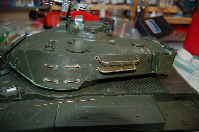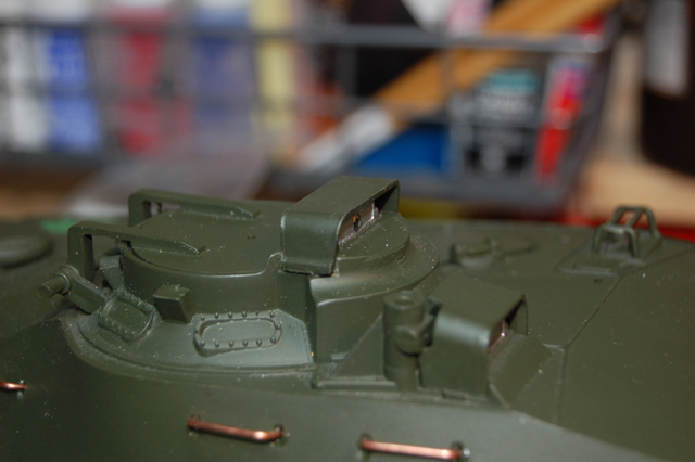 What I have noticed about the Heng Long M41 is that the plastic hand rails on the turret have a tendency to snap off and so does the cover for the commander periscope so this is what I did.