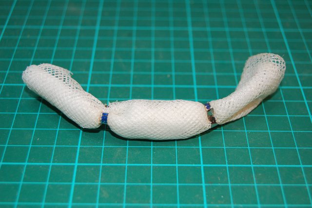 I also made I roll of cam net made from net curtain my wife got from Ikea. I cut a piece off and rolled it to shape. Then I used two strips of aluminium cut from a drinks can as the straps. I also inserted I piece of wire to help it keep its shape then using a brush and watered down PVA I just painted it on and left it over night to dry. Once dry I removed the wire and it just needs painting.