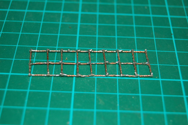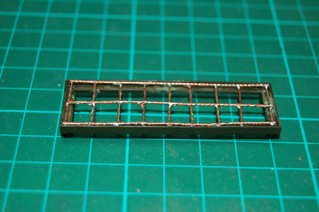 I decided to change the tool tray by removing the tool mounts just leaving a frame. Using thin copper wire which I got by stripping down some spare electric cable, I braided a few strands together using a hand drill. I then measured, cut to size and soldered together to produce a grid and stuck it in the frame.
