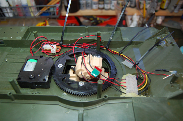 I didn't change much on the electric's except for a bit of tidying up. I inserted a choc block to connect the wires for the turret to the upper hull and also I changed the antenna (I have posted how to do on my tiger build "My First Tiger and Still Upgrading" at http://www.rctankwarfare.co.uk/forums/v ... =22&t=9036).