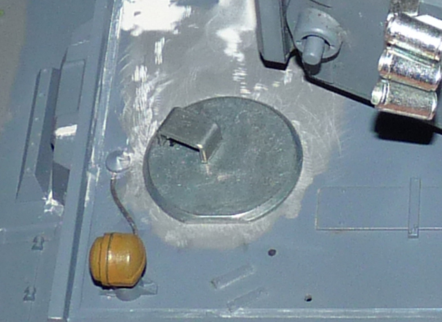 Hi. The way I did it was to use a small drill bit in a pin vice and manually drilling loads of small holes from under the hull using the recess as a guide the joining the holes up carefully with a modelling knife. You could use a dremel etc but I did it by hand as you have a "bit" more control it you pardon the pun. It does take more time but I found this way a lot easier. That done its just a case of using a small file to tidy up the holes for the hatches. The secret is to use the smallest drill bit you have and drill lots of small holes (the bit I used was 1.2mm). Once all is filed and sanded smooth using a bit of water and wet and dry paper, I just super glued the hatches in place using to the small pins to correctly seat the hinge. I hope this helps and thanks for the comment.amoruso44 wrote:Great build ...plenty of ideas. Canyou advise how you managed to cut out front hatches ? Looks very accurate cut. Have recently purchased metal hatches but having difficulty/courage as best to remove. Cheers.