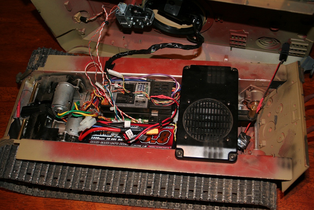 The Tamiya electronics occupy a huge amount of space especially the speaker box which is MASSIVE.....Unless you equip it with Heng Long electronics...like mine.....