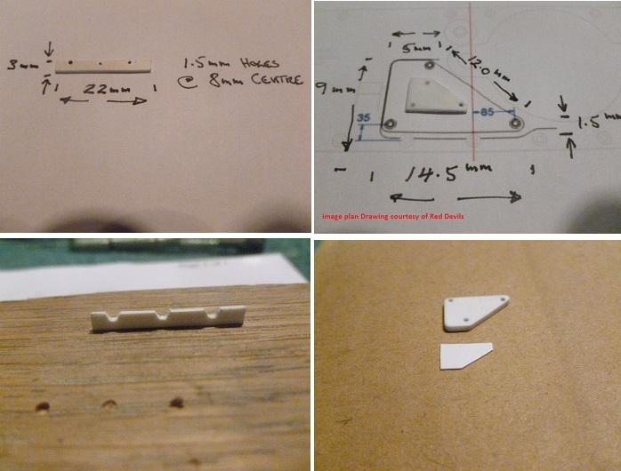 8- Reinforce underside of the rib with styrene over blanking plate 9-These are the parts you need to make from styrene, the long thin plate is 1.0mm styrene, the