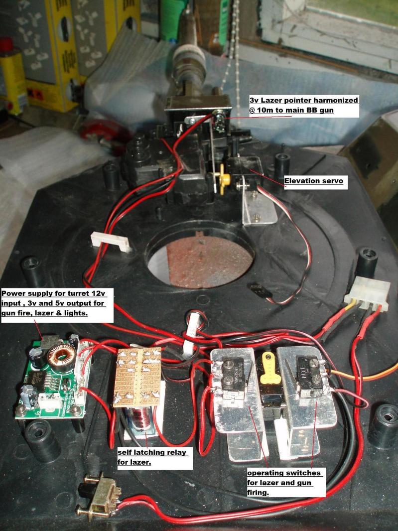 On E-Bay I found a 15 wire CCTV slip ring unit for £12 which will allow me unlimited 360 degree movement and also some of the electronics to be mounted in the turrent ie. the gun fire relay and the Lazer pointer for the main gun barrel, set to match the main gun at 10m