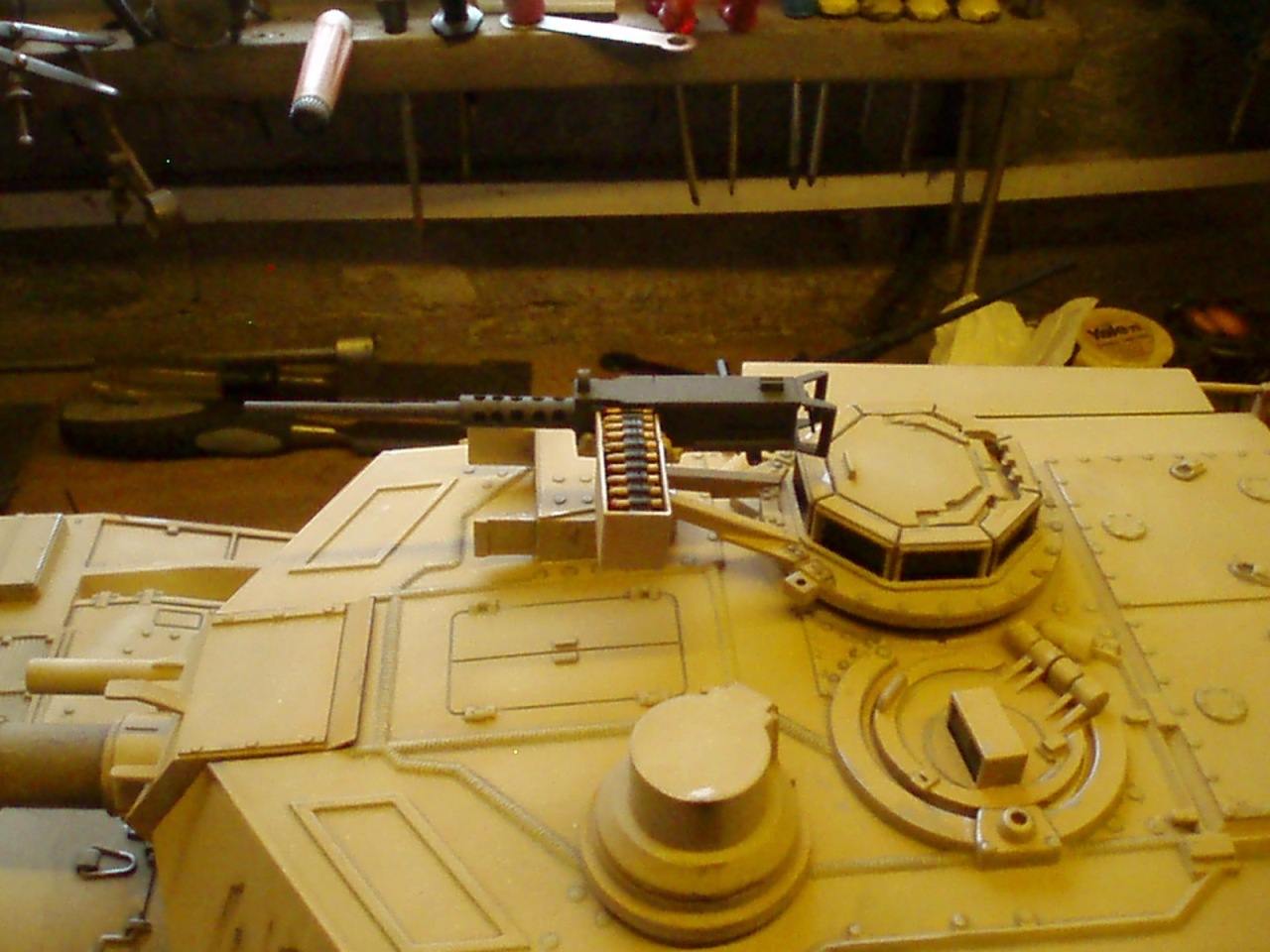 The .50 cal I made from scratch using plastic card for the reciever brass tube for the barrel and plastic tube for the heat shield. The mount is also from plastic card and the ammo is bits of plastic rod stuck together with a peice of nylon tent material stiffened with superglue.
