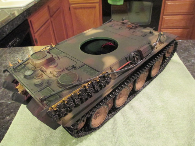 I'm waiting on a few extra parts. Ordered a couple of sprues of Tamiya to get the armored shutters and hatches for the storage. Also, the small lifting hooks for the fan covers. I'll probably drop a nickel on the track slack rollers as well but am still on the fence about those. This tank turned into a lot of work like Heng Longs have a tendency to do. They are labors of love tho' and along with this forum have made me a better modeler than I used to be. Not so much the skill applied but the extra effort and time involved because you can see what is possible with one of them. They've come a long way and I suppose I have to.