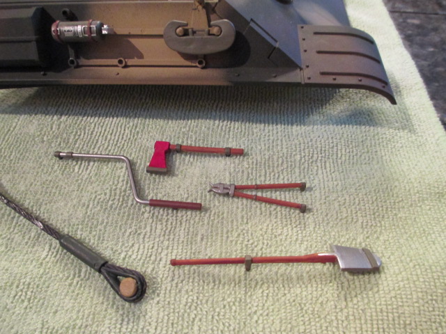 Just an observation on the axe, I don't think they painted them red (or fire extinguishers, seen some people do), if anything black as the tank is camo you wouldn't want a nice little red target to shoot at.