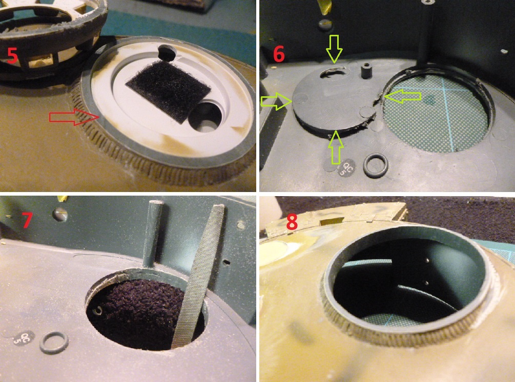 2-This is the ridge on the upstand that limits how low I could place the metal version. Ideal was to have the Cupola flat to the surface of the Turret Top. This meant grinding the upstand down which meant losing it.