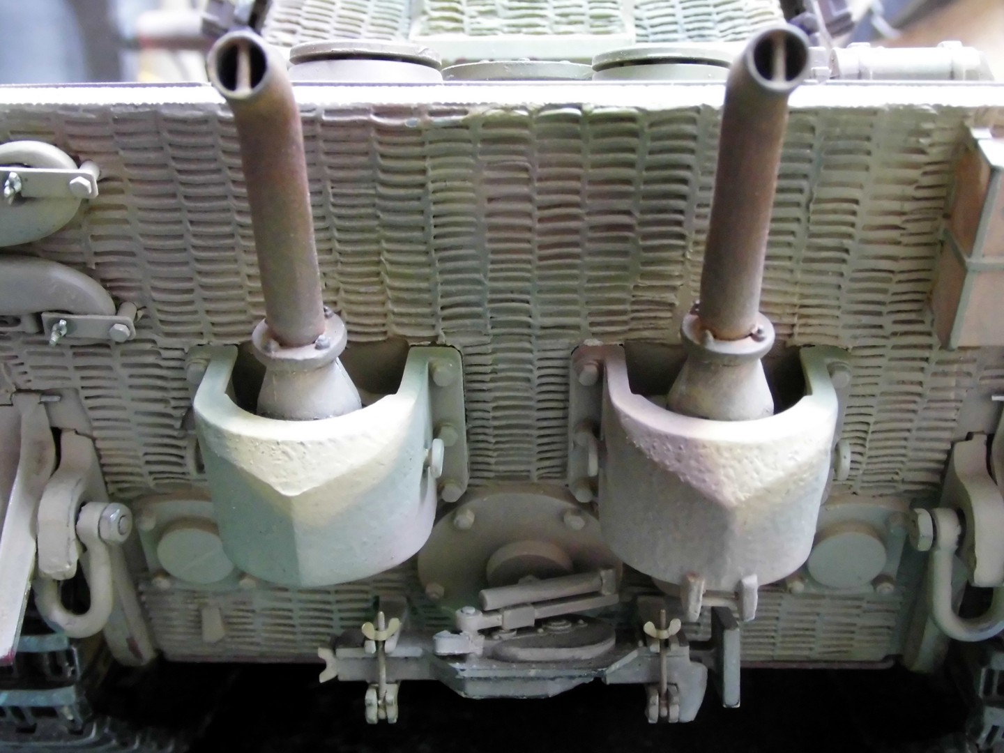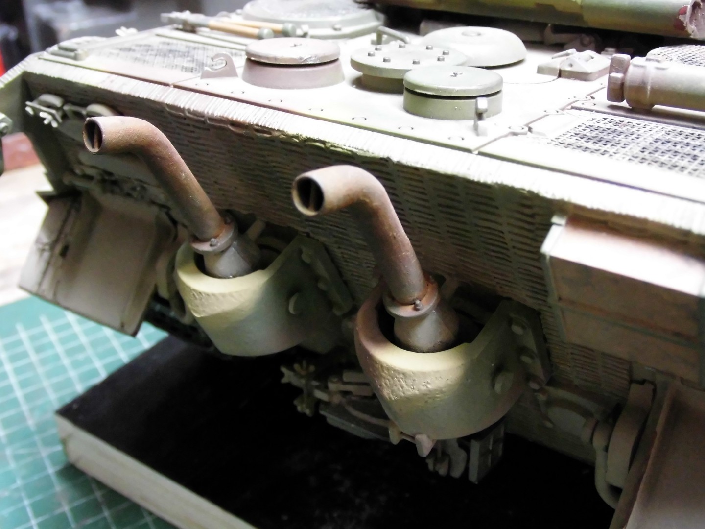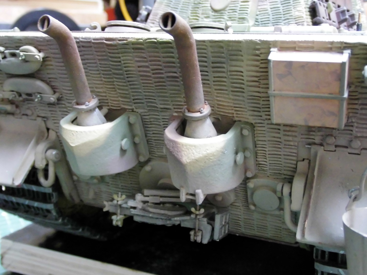 At first I’ll fit a mistake from Torro at the armor for the mufflers. The plane areas aren’t present at the original; the armor is behind rather more pointed.