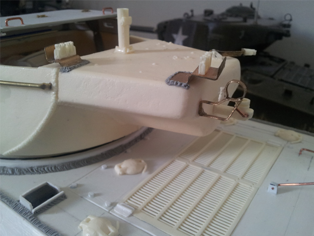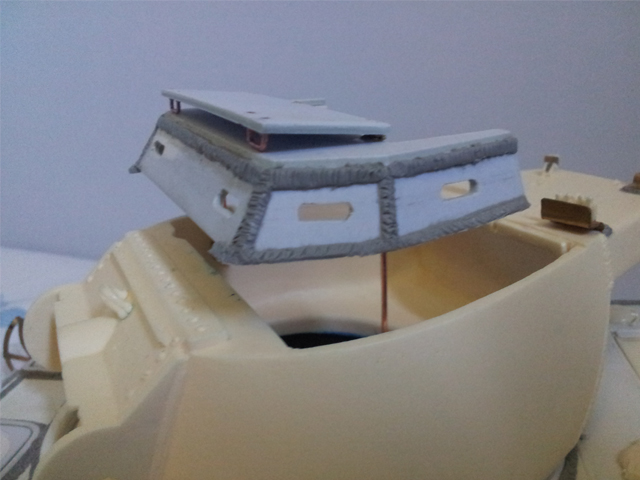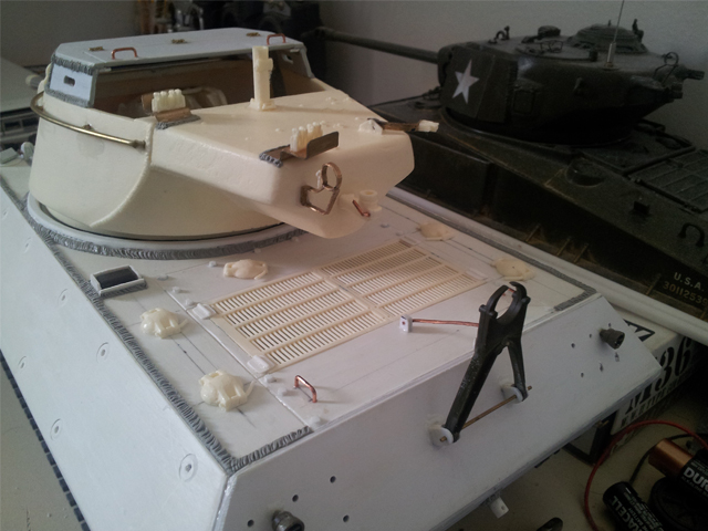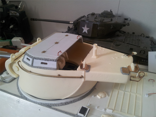 I still have not figured how to make the gun's recoil. There is little room in the turret for the mechanisms and I'll need to dispense some of the pieces made by Nick, leaving only the barrel to install the recoil. But there's no problem with the roof patch field. I made it removable just to be able to have easy access to the interior of the turret.