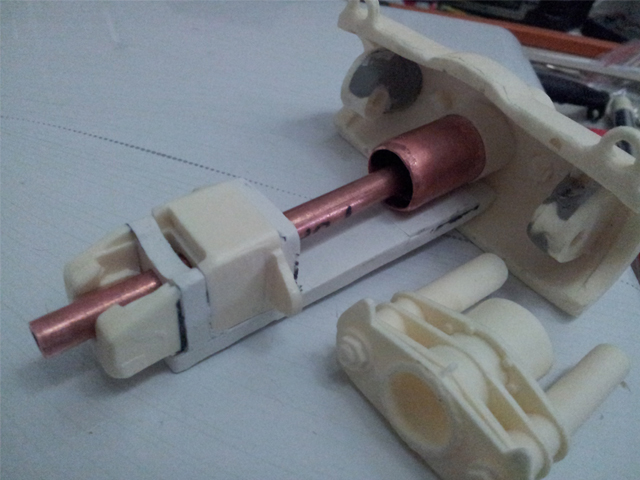 I decided to rework Nick's parts for the gun to allow the installation of the servo recoil. I do this to avoid a very different apperance from the internal visual of the turret.