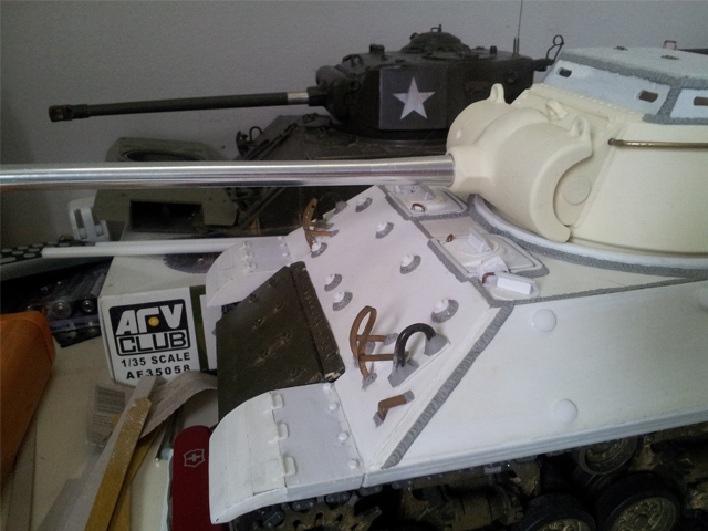 I just bought on eBay a complete recoil unit for the Tamiya Pershing. I'll try installing the recoil mechanism on Nick´s M36 turret, but I think I´ll need to give up the parts of the gun that are inside the turret.
