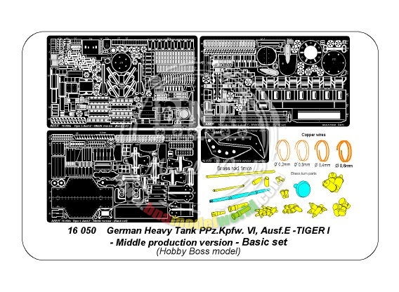 That means it's not the comprehensive all-round Aber set (so no hatch details for instance). Also is no front headlight mount and no turret track hangers. The kit seems to be aimed at the Hobby Boss Tiger (it mentions it on the label).