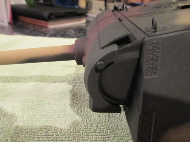 7th Day work should be entitled, "them's the breaks". Everything I touched either broke or glued itself to my fingers. Add Heng Long's extra fragile grab handles and fun! fun! fun! Well, we can fix what we break and so it it was. Some sanding after curing then final paint touch up and all will be as good as new. I did manage to get the improved metal mount and MG-42 AA modded and sanded and press fitted. I thought about adding the detail to the mantlet tonight but wisely decided to call it a night before I bent the main gun or summat. More fun tomorrow.