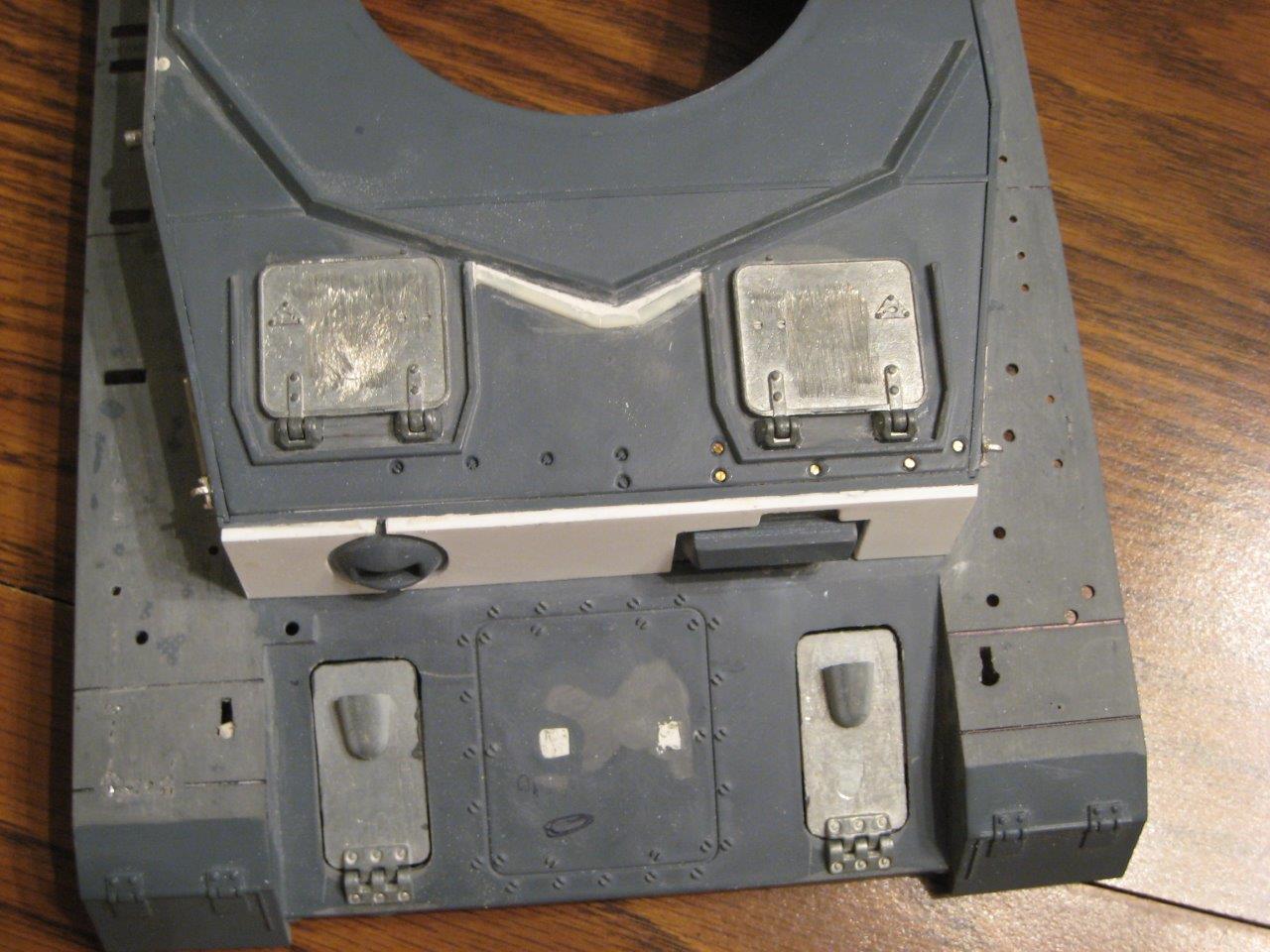 Engine access hatches: These were also installed. If you plan to do this, you’ll lose both of the rear screw posts for attaching the lower and upper hull. You also lose one of the posts for the rotation motor and one for the 8-pin plug. The rotation motor will be fine on 2 posts (originally there are three). The 8-pin plug can be moved to the front between the driver’s and radio operator’s positions.