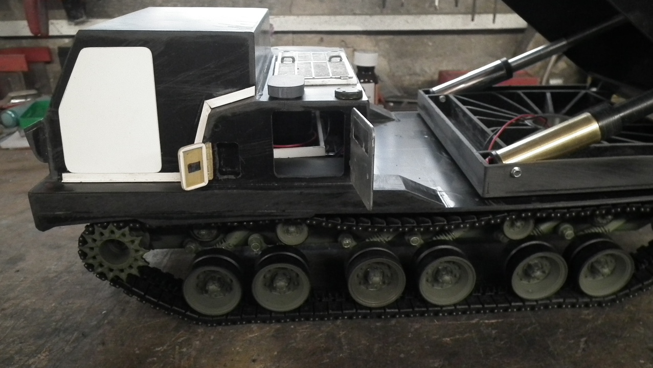 I going to use a mix of HL (RX-18) for motor control, engine sound, Lights and missile table transversing, but driving the RX-18 through a RC5HL converter and a Turnigy 9X transmitter, Thats only 3 channels and so leaving the remaining 6 channels for missle platform lifting, missile firing system and maybe missile pods removal and replacement plus any thing else that might be needed or will fit in. Due to the low chassis profile space is very limited. hopefully do the window shutters, ariel bases, and doors next.