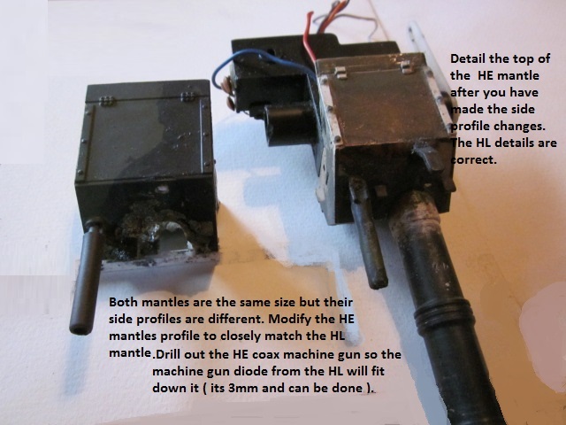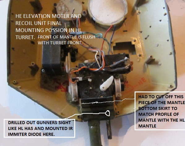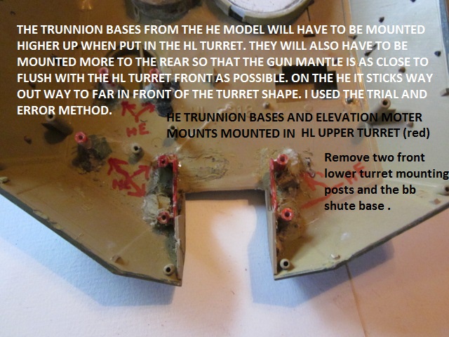 HE parts mounted in HL turret after much adjusting of location of HE trunions and the profile of the gun mantle.