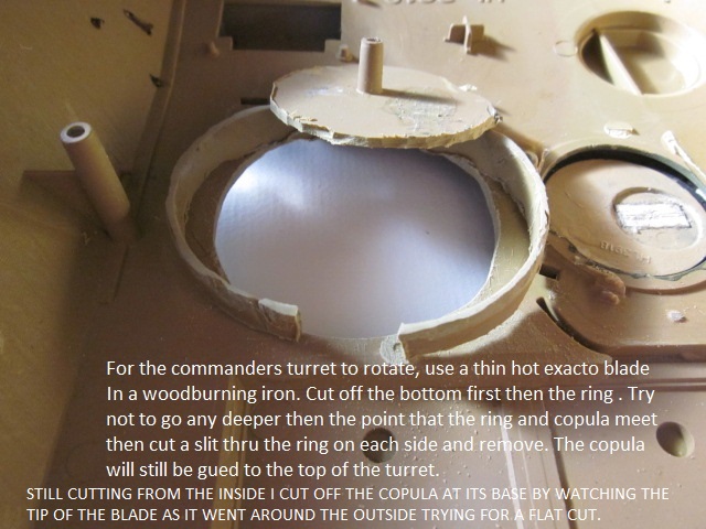 The whole copula will rotate which I discovers is not correct for Any A2 Abrams since the copula is stationary and only the 50 cal gun mount ring rotates on the copula.