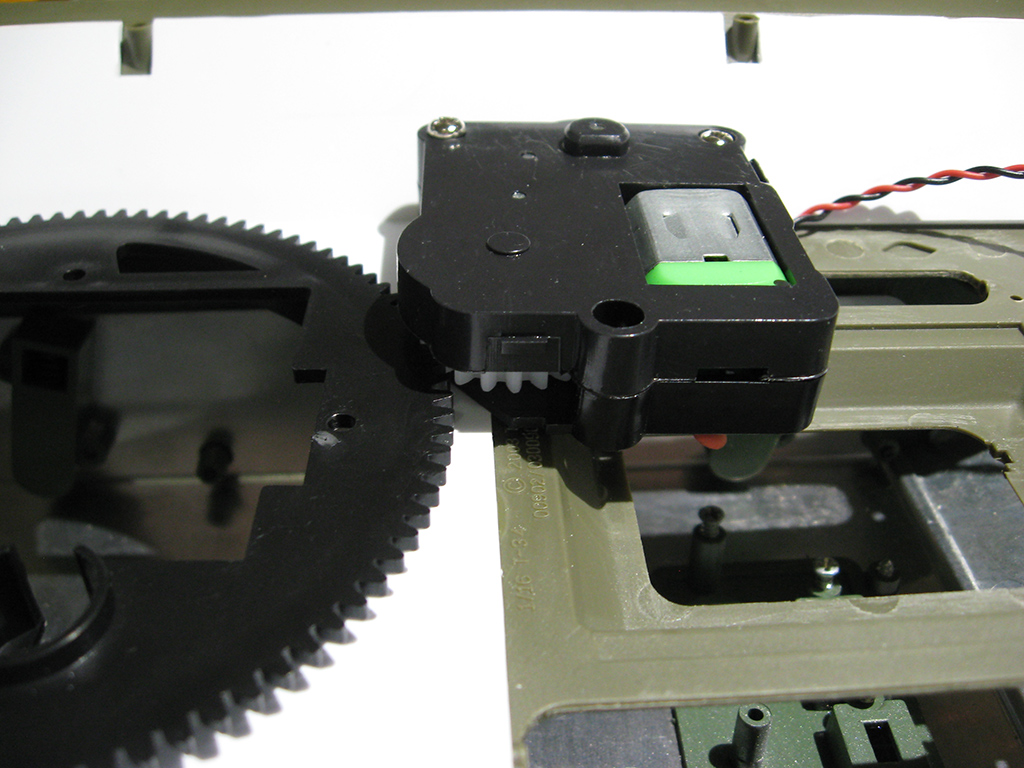 I tried a few different arrangements for the turret rotation motor, but ended up supergluing a few M3 nuts in place so it can be bolted on. It seemed like the most foolproof method.