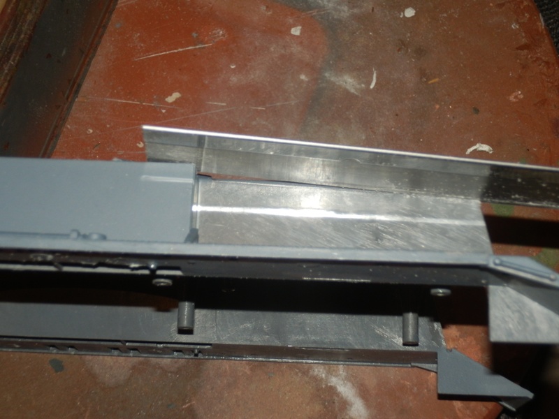 Lower hull ABC slot backed with styrene & puttied up.