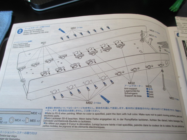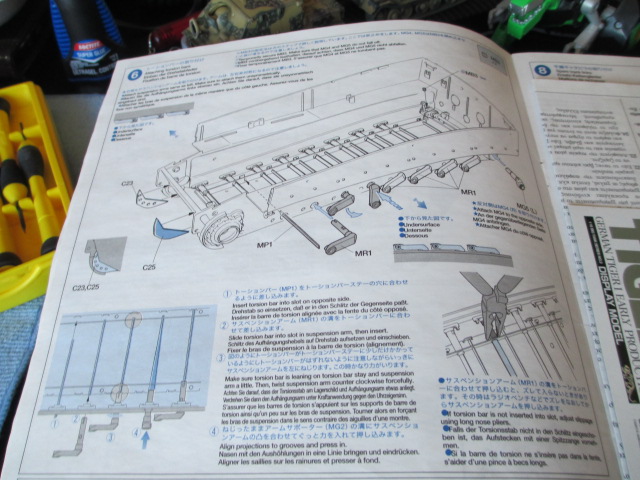 Step 6 tonight and as it involved torsion bars was mainly a lot of repetition. Two tips from it, A: If you look at the illustrations for this step, you will see the way to do it almost immediately...if you read the How-To, not so much. B: Use this time with the swing arms to do a little flat file work and clean them up before you mount them. Will look a lot better later, painted. Pics: