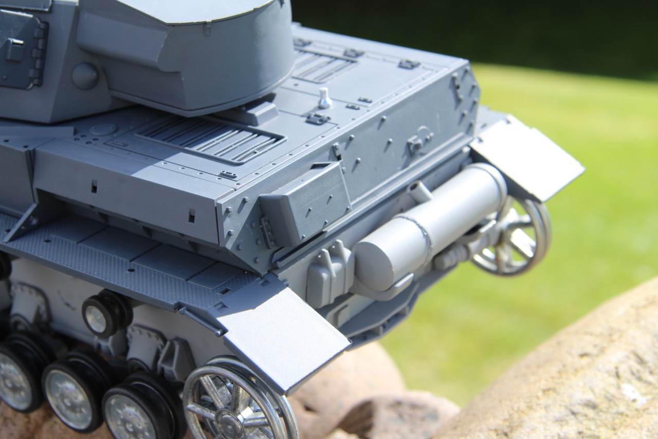 Taigen Pz IV rear is correct where upper deck flange is flush with that on the lower hull, and rear the panel almost overhangs the exhaust..not set back from it: