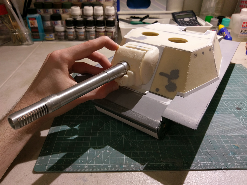 Holding the gun in place, it's starting to look the goods. Next task is working out the traverse/elevation/recoil mechanisms, then it'll be on to the detailing (the fun stuff, everyone's favourite!).