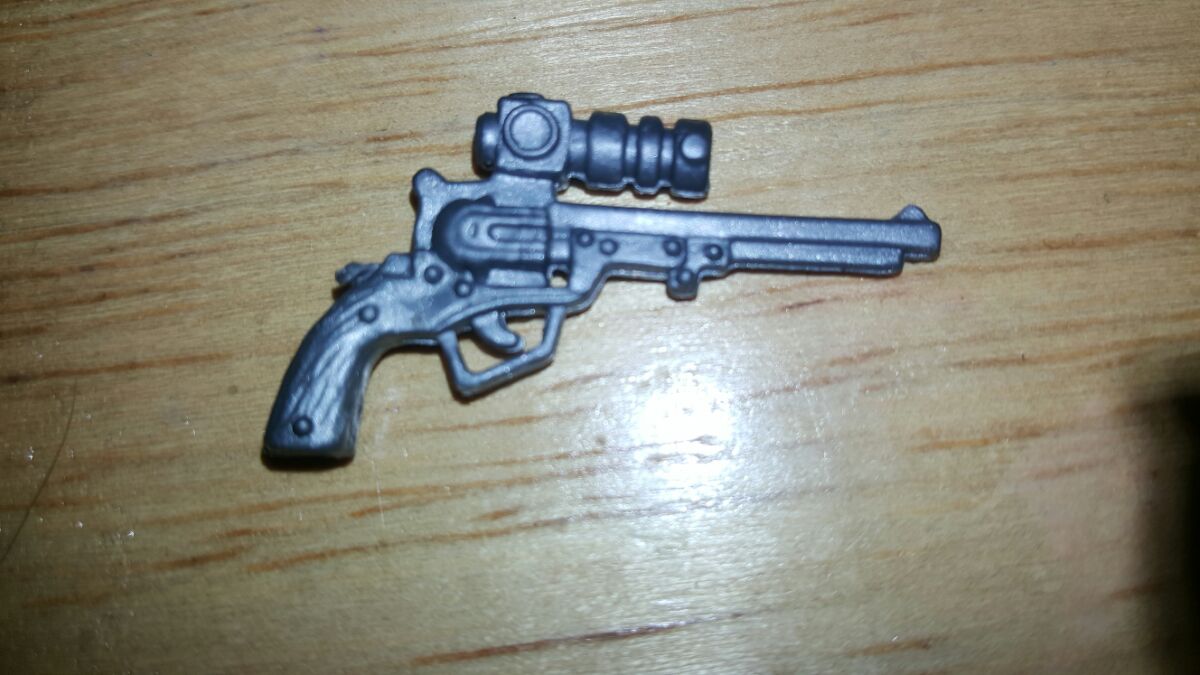 Before paint, warm the fingers of the figures hand with a blow dryer or other controllable heat source. That will allow you to carefully bend the hand or fingers to make the cup form that the human hand takes when holding a revolver or pistol. Let cool and paint to suit. If you are going to the trouble of putting a weapon in the Commanders hand, make sure to paint it up accurately and using a micro drill or pin vise, drill out the bore so it looks realistic.