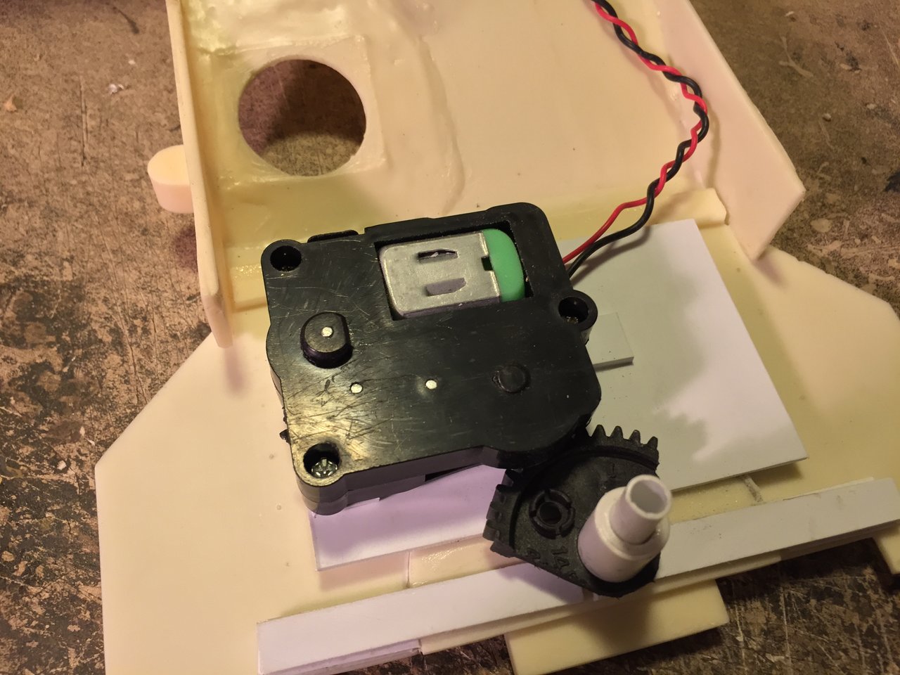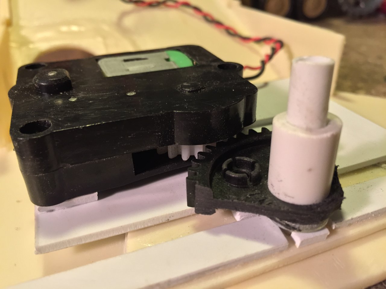 Then I used a Traxxas 3955 plastic gear wheel that I connected to the base using 4 plastic rods of different sizes put together to form an empty shaft of the size needed to fit the gear central hole. The arc of the gear was much reduced in order to limit the gun traverse and to make it fit under the base panels. I will put some stoppers at the 2 ends once I know how far the gun can turn. The shaft is empty because I am planning to use a pushrod through it to create gun elevation. This is coming from my days as an RC aviation builder. Pushrods are used for aileron control. In this case, it will connect somewhere under the gun and nothing of it should show. I will wait for the gun to be built before I can design it. The pushrod will allow me to use whatever space is still available in the hull and I will try to reuse the HL PZ IV elevation gears, if possible. There is not much room left available under the hood.