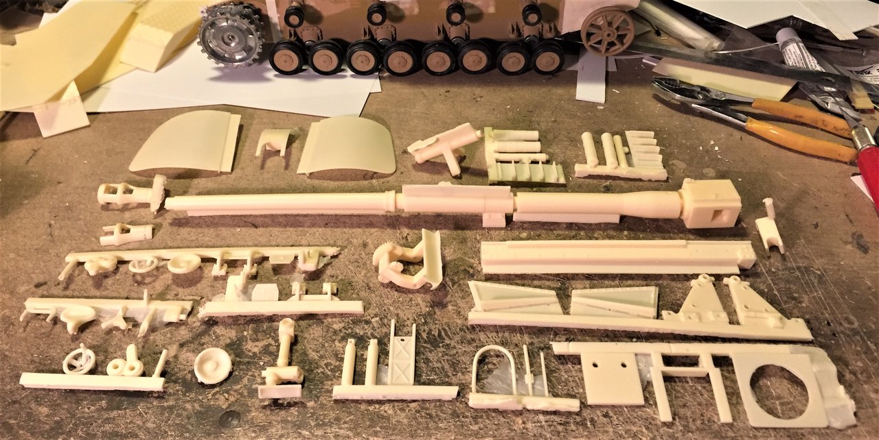 Your question about the gun finally led me to inspect the gun parts. Without having done any accuracy checks (dimension, details...), I must say that at first sight, I am really impressed. There is no or limited warping, and no air bubbles on these. The tip to middle barrel section actually screw and unscrew from the main section, wow, I have never seen such precision in resin casting. And it includes a gun sight, something many conversion kit makers ignore. But, its the accuracy that will make me happy or not, I'll check that soon.