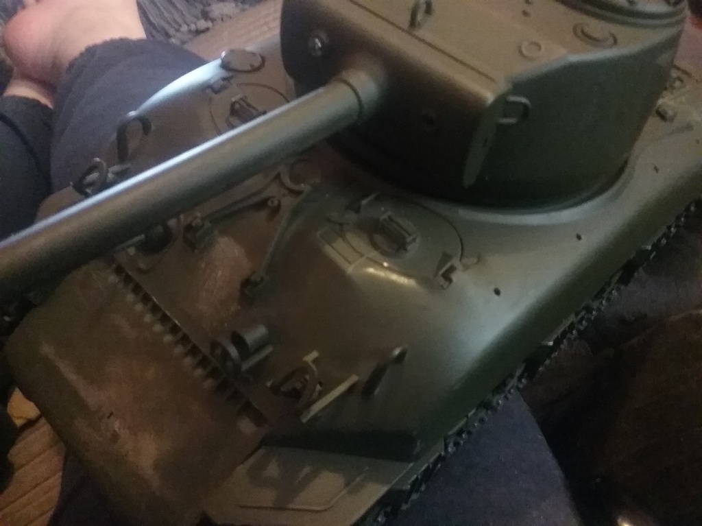 Started to strip the sherman of all the accessories and got the turret off for the heng long turret