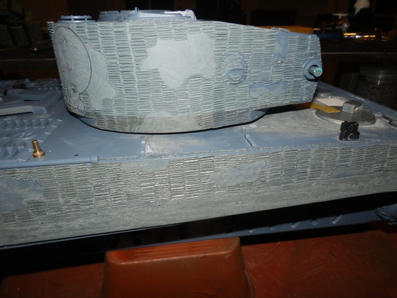 I was going for a partial factory- partial field applied look, with wear that should be normal with a well used hull/turret combo.