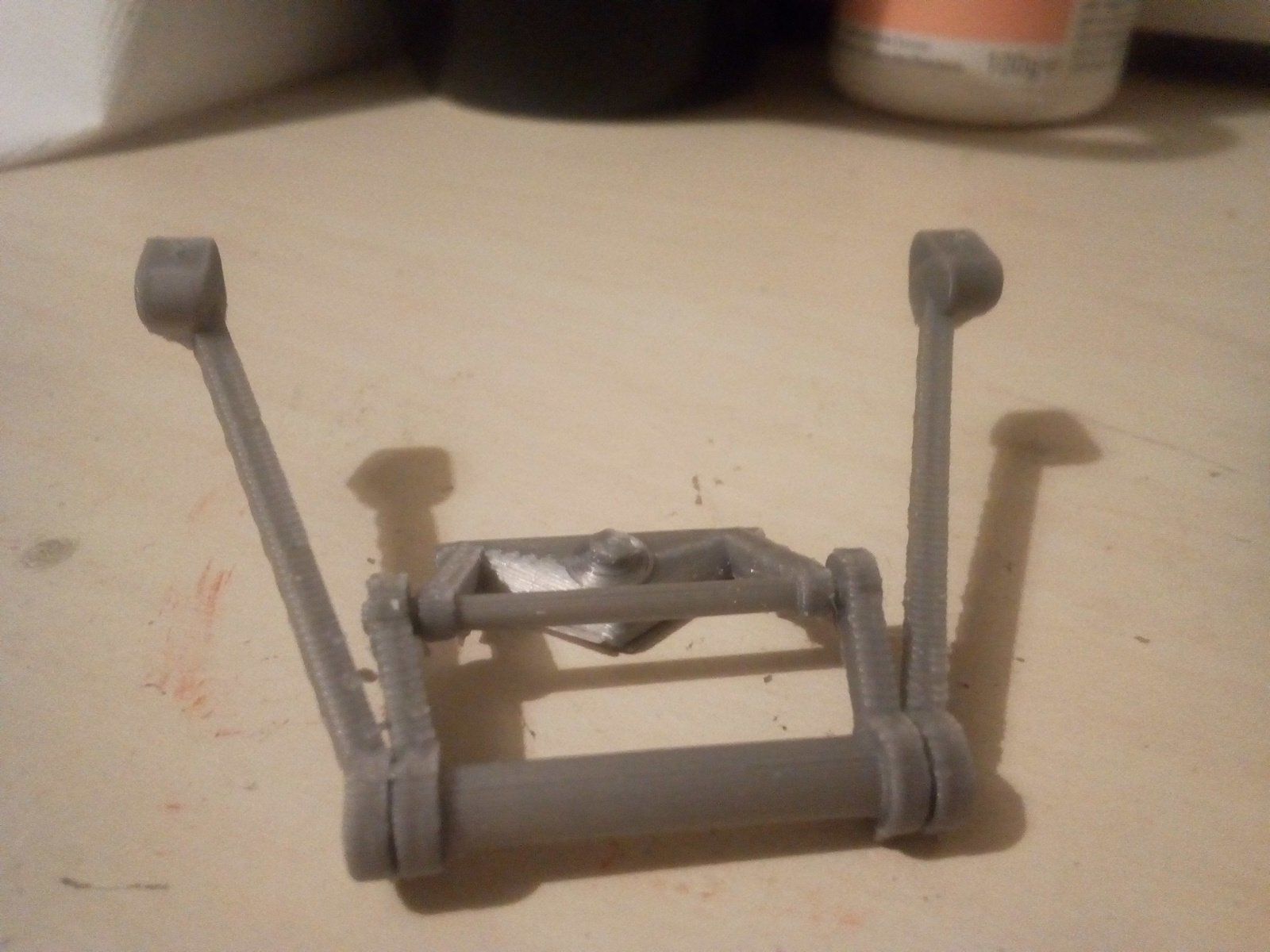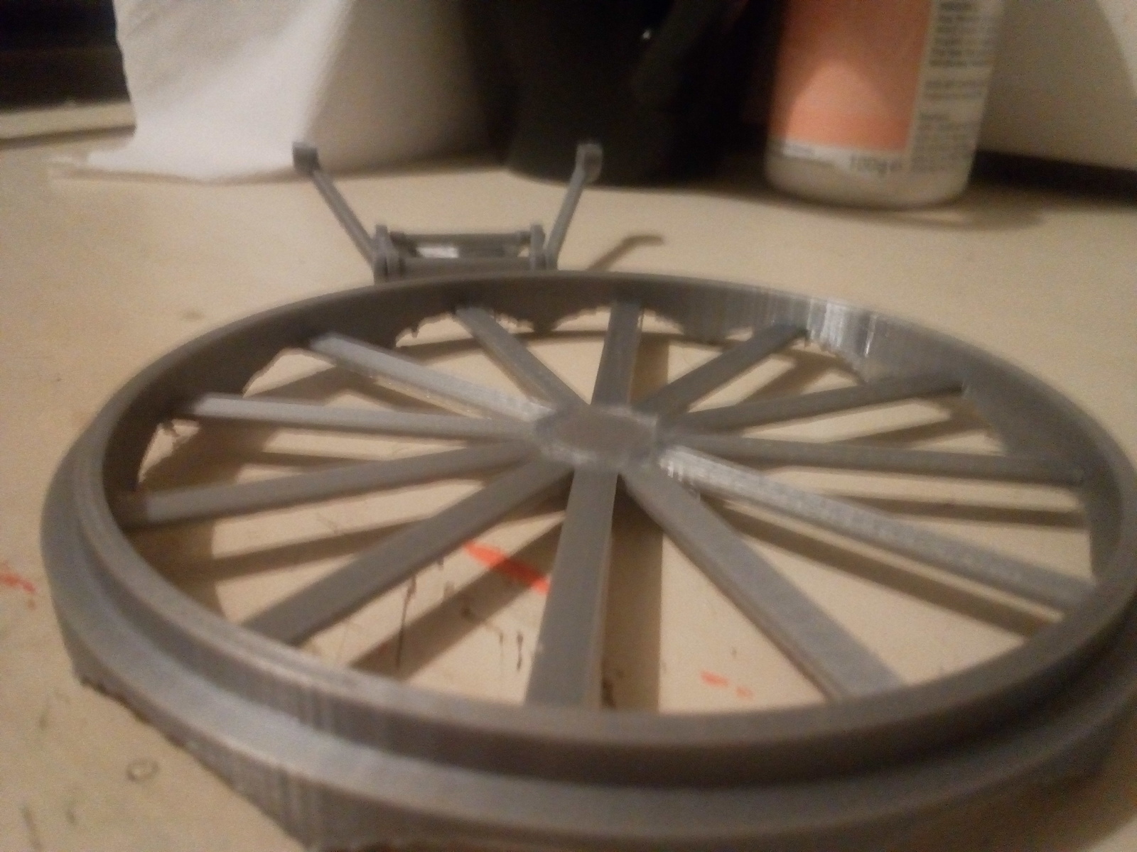 Should have thought to ask, before blindly copying a museum pic. the base is under the wheels when in the firing position, that pivot underneath would be extended forwards. Might print the three parts separately so that they can rotate.