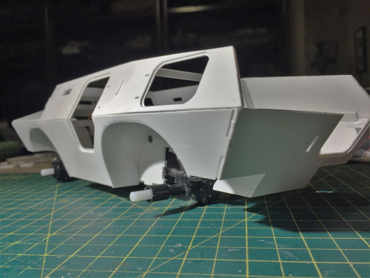 The body has gone through many phases of putty and sanding, not perfect yet but enough to continue with the build. It is really only after the first coat of primer that the true situation will come out of all the whiteness. No point doing the polishing at this time.