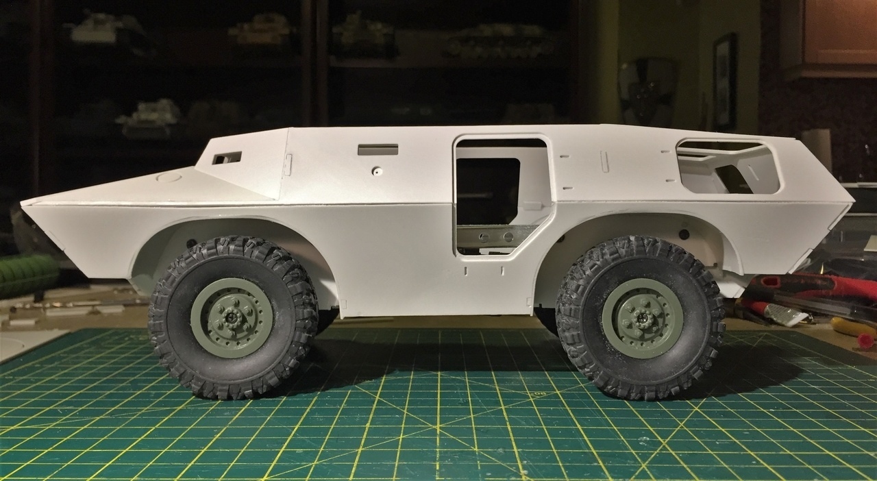 Next step are the putty and sanding phases to make the whole thing smooth and pretty before the smaller parts and detailing can start. This is a fun kit. So far, I recommend it to anyone who want to do something special with a WPL chassis. With so many versions of V-100 and V-150 available sold around the world, with different turrets, there are many possibilities for custom and unique creations.
