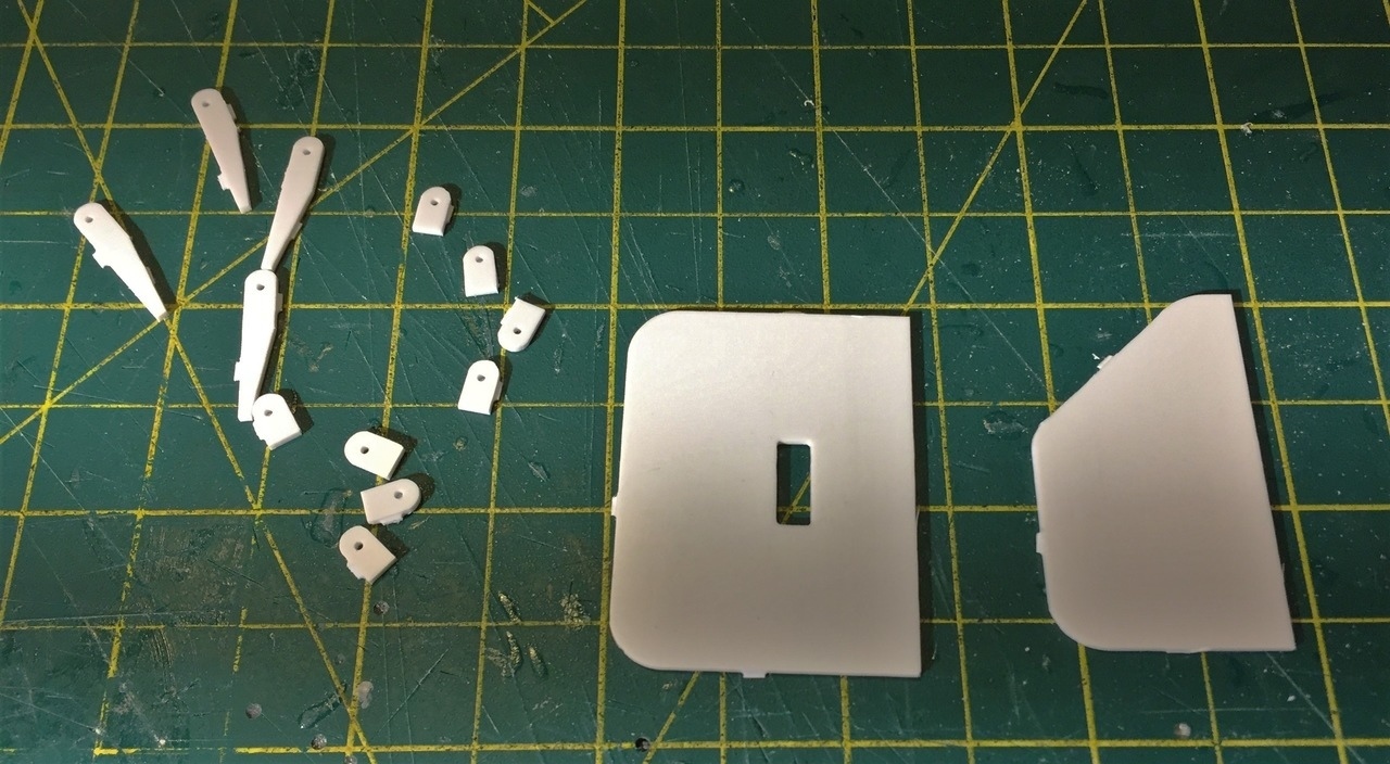 Here are the upper hull parts, prepared and ready for assembling.
