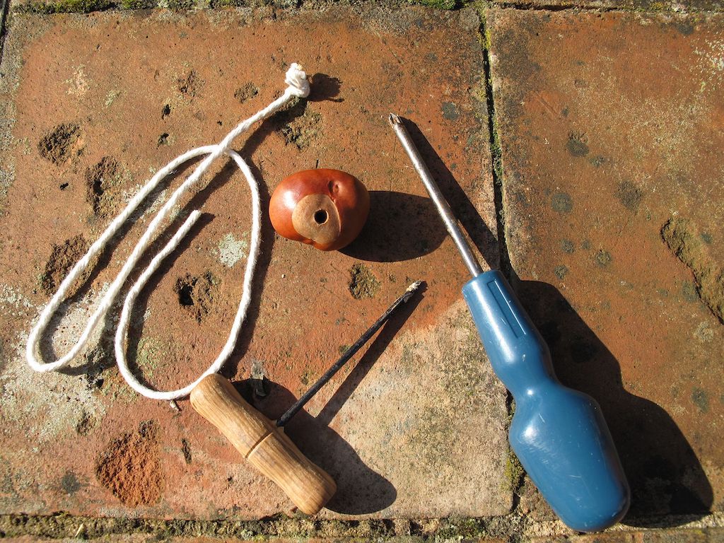 Still, a more suitable use can be found for Tamiya full-option bits of string: (Since I lifted this shot from Wikiconkers, the attribution for the photo goes to: XCalPab. Hopefully his conker went on to be a champion ere it split asunder