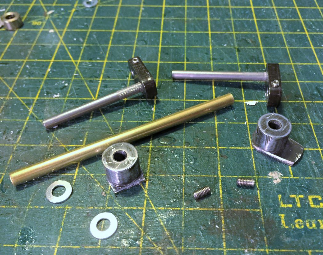 Here is the push rod mechanism. Having hidden it under the floor required some bending of the metal tube that holds the push rod, creating more friction than if the push rod had been kept above the floor like on the Acav model. It is therefore not as smooth as I expected, but it works ok. The link with the servo will require more fine tuning.