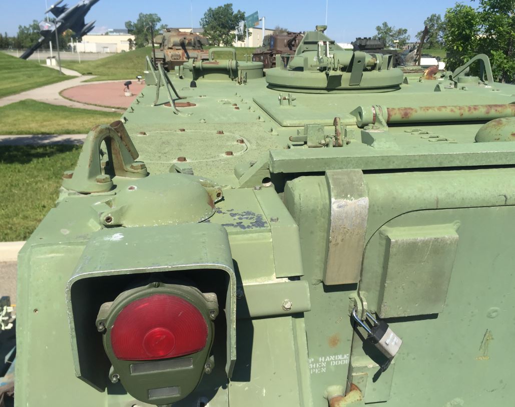 While on vacation in the Canadian Rockies, I was able to visit the Military Museum in Calgary, Alberta. They have quite a nice collection of M113 variants and other vehicles. While doing a photographic walk around of key areas of the M113, I was able to observe that my attachment of the rear external fuel tank to the hull was totally wrong, at least for the way the Canadian Army put them on. I will therefore un-snap them and redo the integration accurately. The fuel tanks are aligned with the hull but there is a trench line feature between the two. Missing info issue about the other details of the fuel tanks are now resolved as well.
