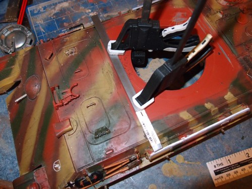 Fixing another problem , no forward deck joint. Tidy up turret and hull cables and paint interior.