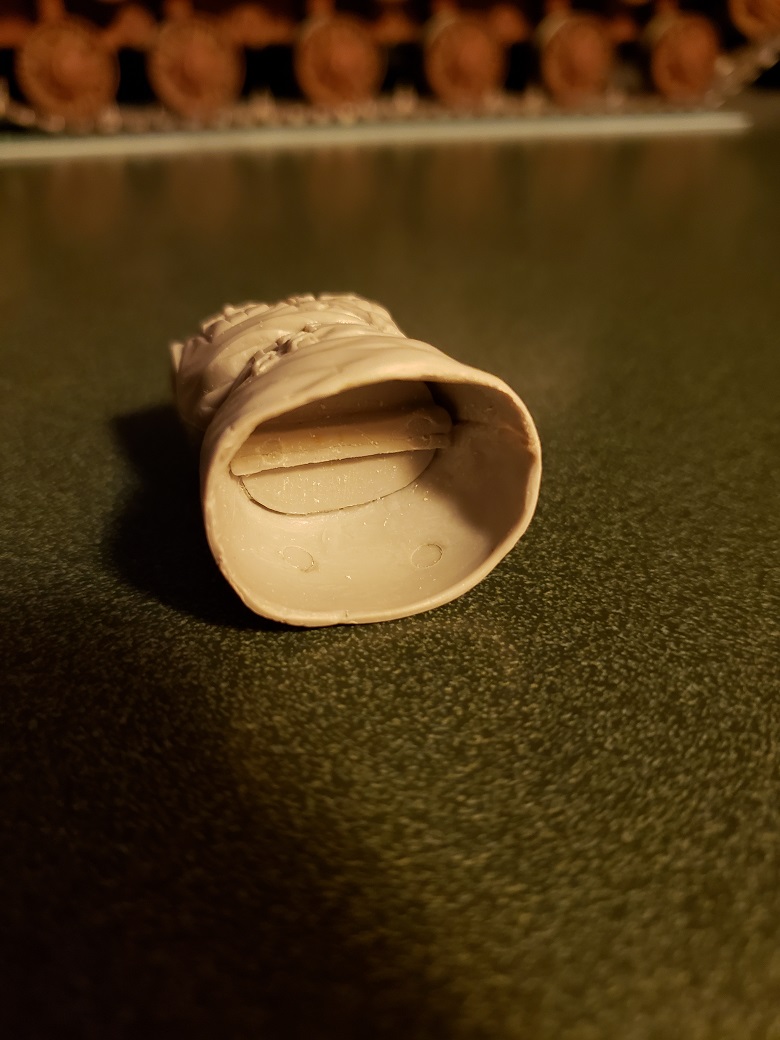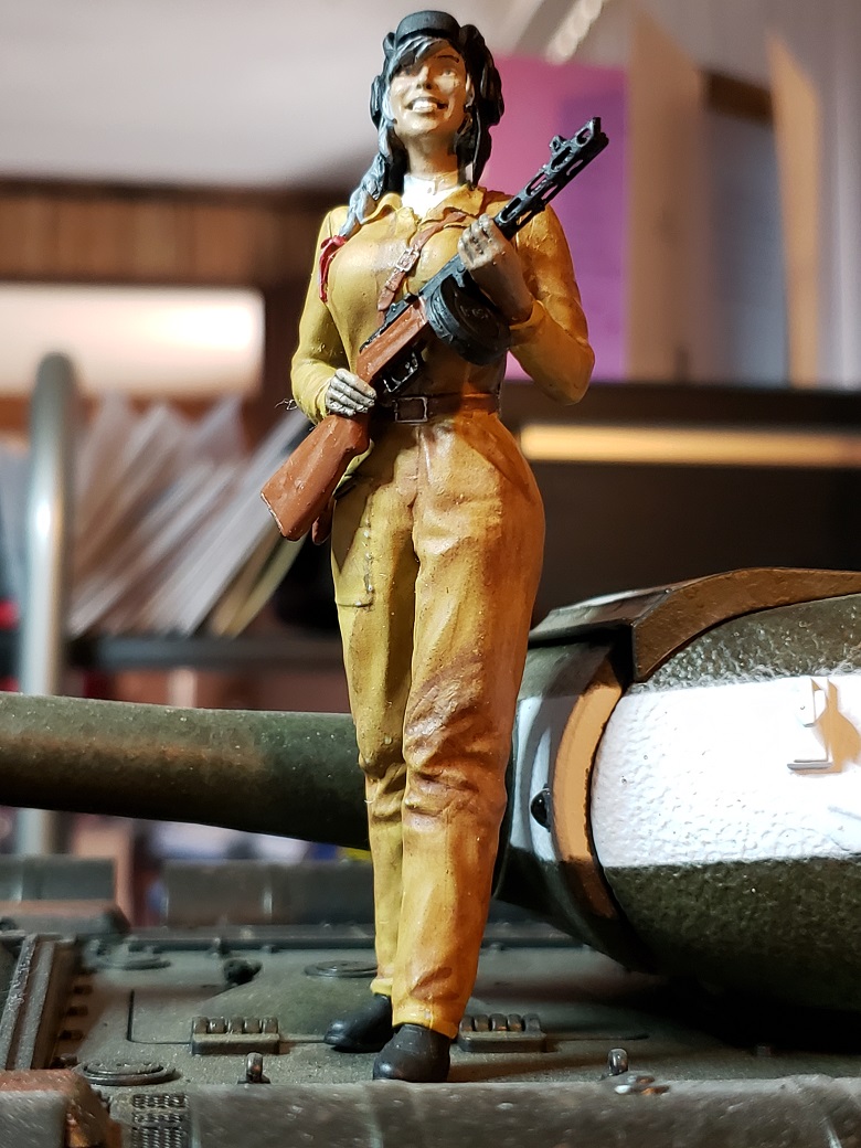 Parts are filtering in for this tank. The Shapeways Dushka MG came in and it is a beauty. I am still awaiting a working rear turret MG from RCTank.de and some clue as to where to get a working barrel brace. ( Someone could make some serious dough from offering one of those ) To fill up the time, I am working on the crew. Pics ( Click to enlarge )