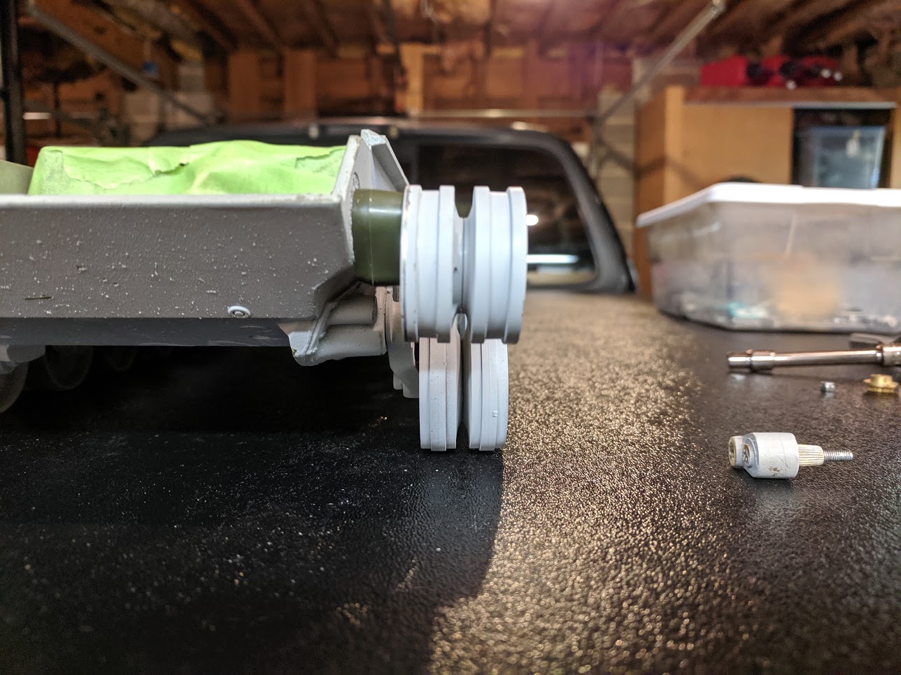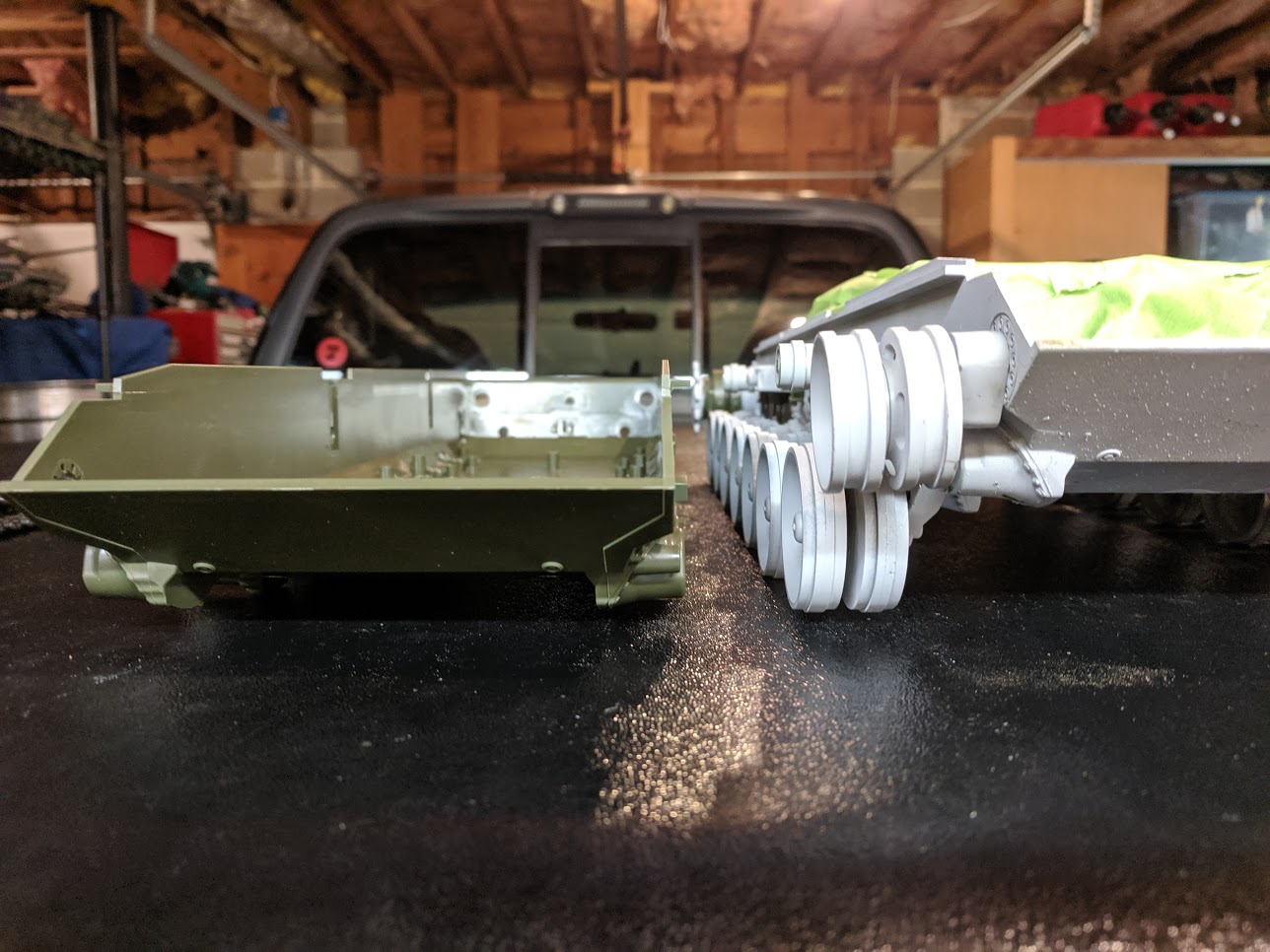 I have too much ocd for crooked idlers, if you look close you can see the paint rubbed off on the inboard side of the one I had the track on and didn't even drive it at all.