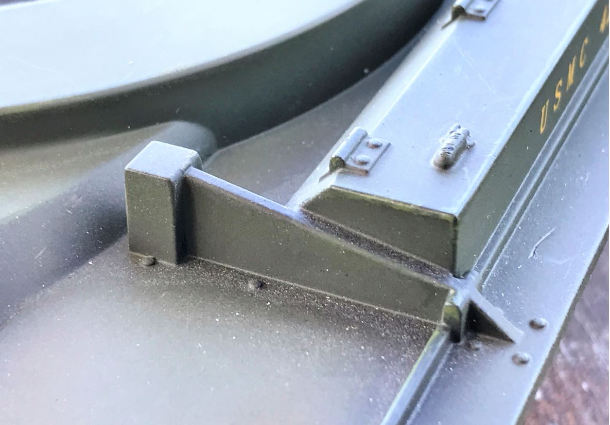 Same area of the real thing. While still being somewhat accurate in size and shape, the model is highly simplified. The richness of details seen on the real tank is simply not there on the model. It might be acceptable to many but these are the kind of detail that I love to reproduce.
