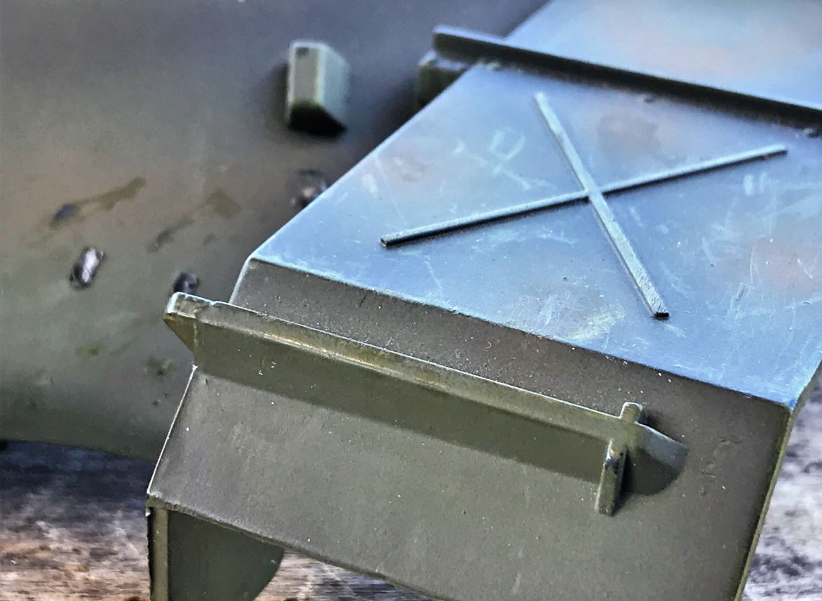 With this important step done, I have a good base to rebuild the fenders with all brackets properly detailed, more accurate air filters, bins and embossed stiffeners of the Mod B version.