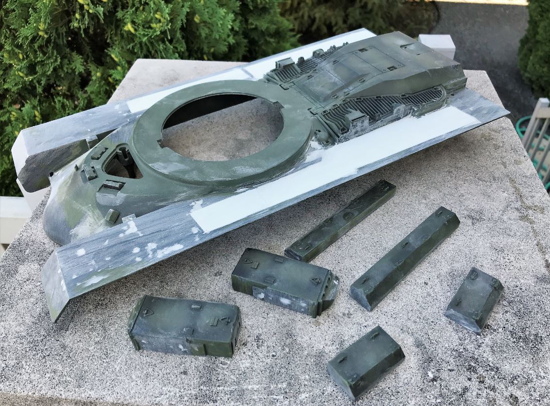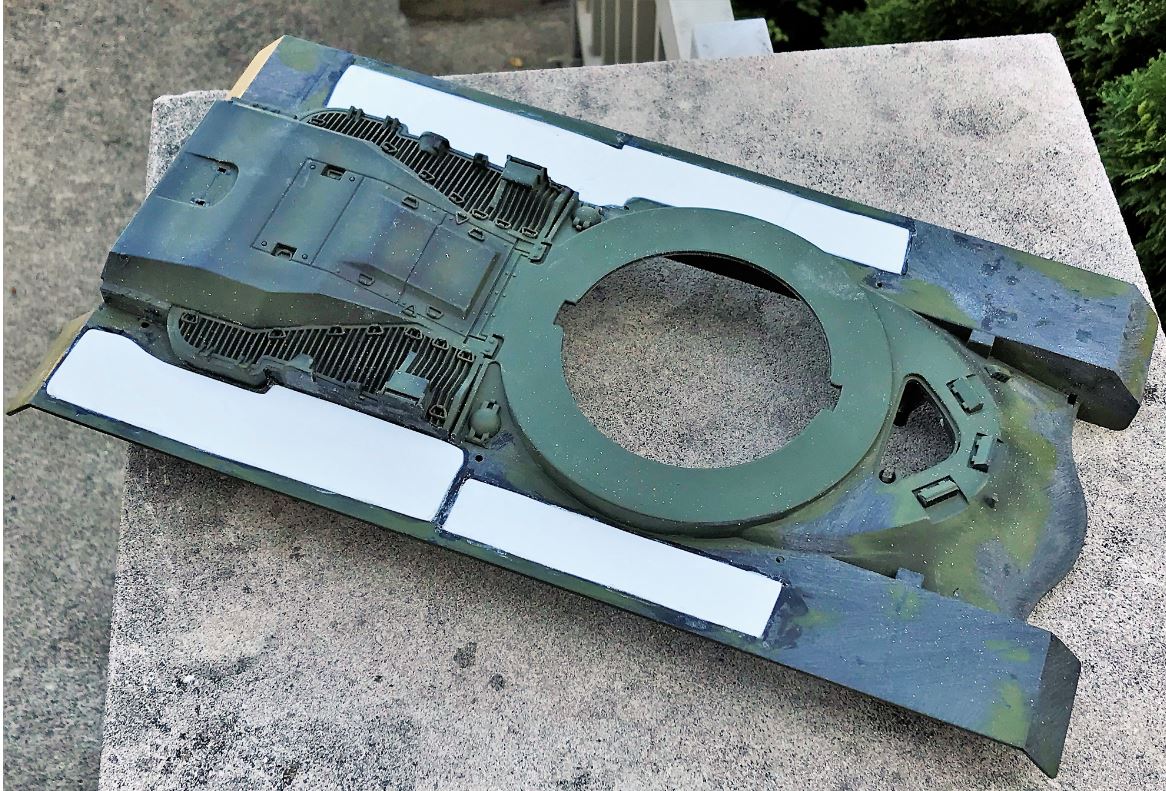 The front of the hull was also sanded to better represent the slope of the glasis. It will be given a coat of putty to represent the cast effect.